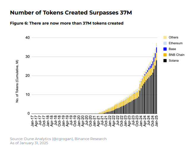 - Le nombre de jetons créés a dépassé 37 millions, et pourrait atteindre 100 millions d'ici la fin de 2025. Toutefois, 98 % de la capitalisation sont contrôlés par les 100 meilleurs actifs, ce qui indique une fragmentation du marché.