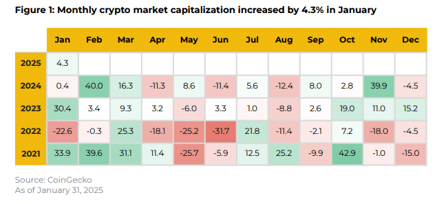 Capitalisation du marché : Augmentation de 4,3 % en janvier, mais la volatilité persiste (Fig. 1).