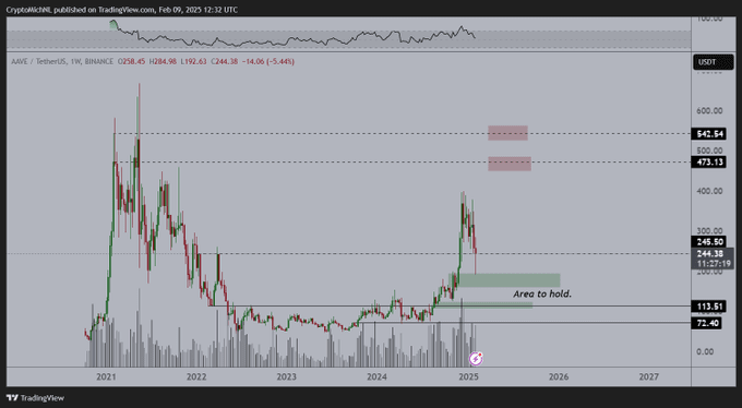 L'analyste crypto Michaël van de Poppe suggère que $AAVE est probablement en phase de creux, déclarant :