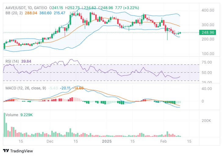Au moment de la presse, AAVE se négocie à 248,96 $, en hausse de 1,69 % au cours des dernières 24 heures et de 2,65 % au cours de la semaine passée. Le sentiment du marché reste mitigé, mais une rupture au-dessus de 300 $ pourrait confirmer une tendance haussière vers 450-600 $ dans les 3-6 mois à venir.