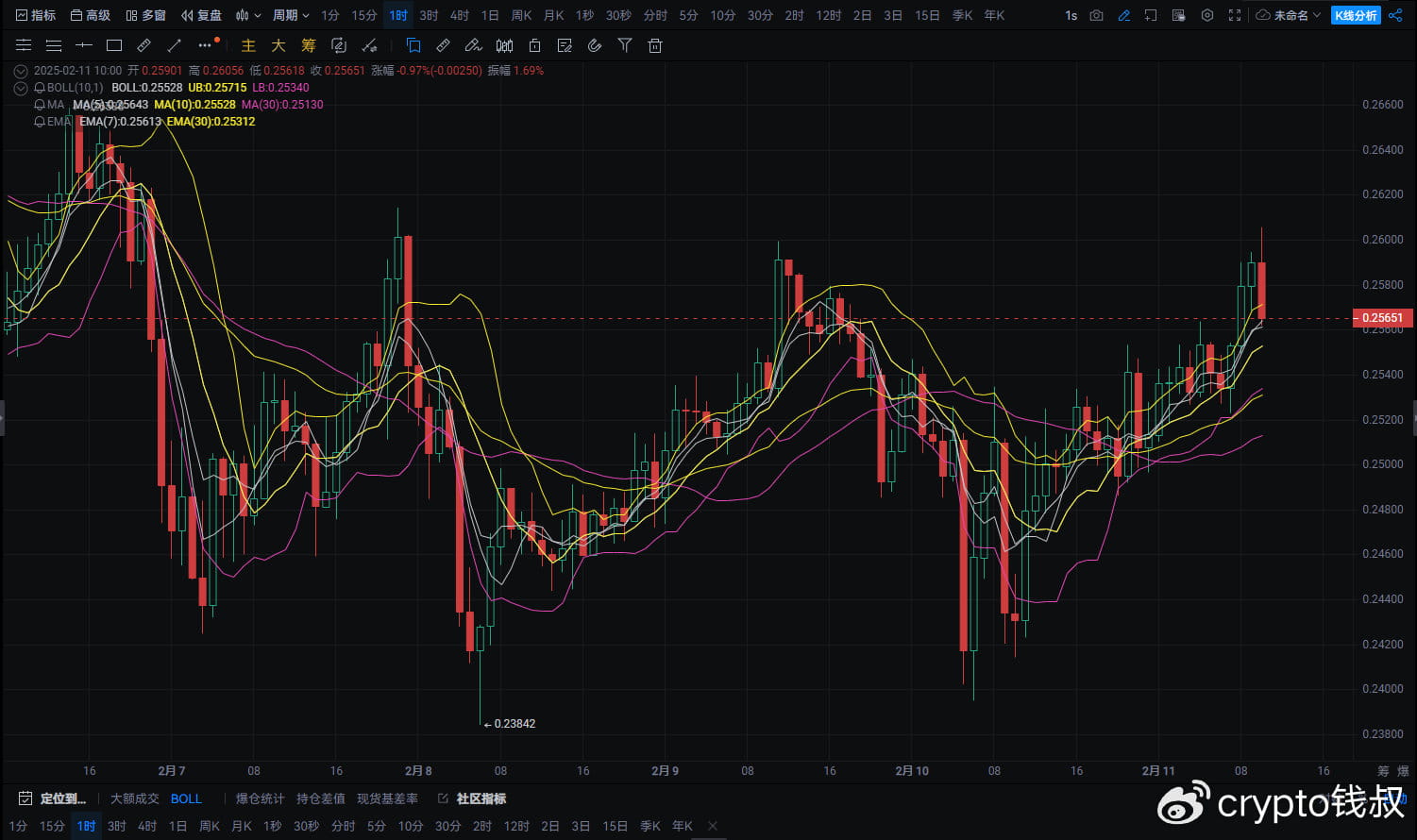 MA et EMA : les moyennes mobiles à court terme (comme la moyenne mobile sur 5 jours) soutiennent encore la hausse des prix, tandis que la moyenne mobile sur 30 jours montre une certaine pression à la baisse sur les prix.