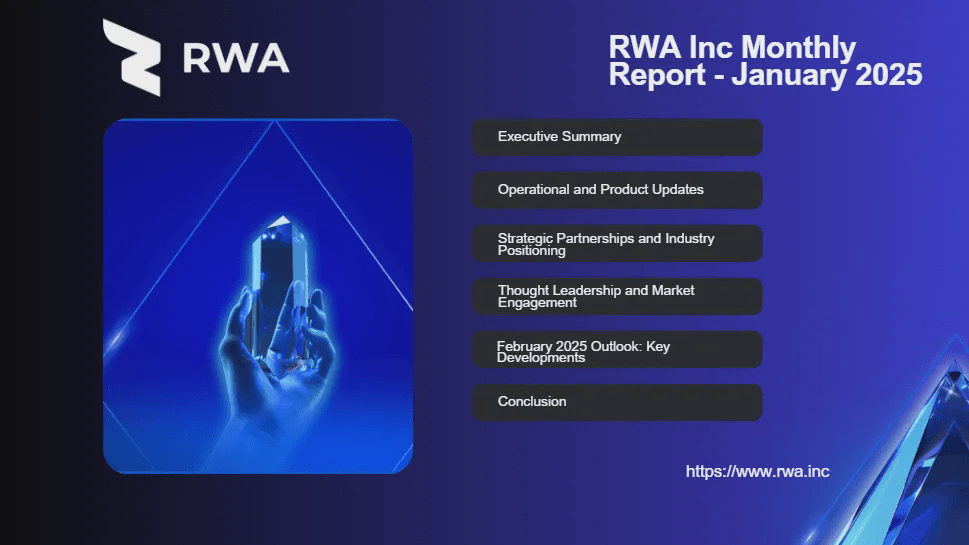 Janvier 2025 a marqué une phase décisive pour RWA Inc, renforçant sa position dans la tokenisation des actifs du monde réel (RWA) et les réseaux d'infrastructure physique décentralisés (DePIN). L'entreprise a sécurisé ses premiers clients de launchpad et de conseil, élargi ses opérations et fait progresser son infrastructure blockchain. Ces initiatives stratégiques améliorent le positionnement sur le marché, favorisent l'adoption et établissent la durabilité à long terme.
