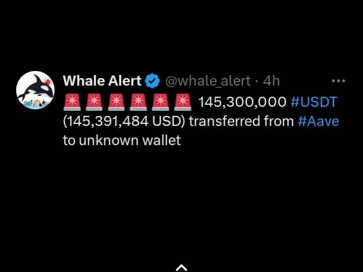 *145,300,000 USDT* (c'est *145,39 millions de dollars USD*) a été transféré *d'Aave* vers un *portefeuille inconnu*! 😱