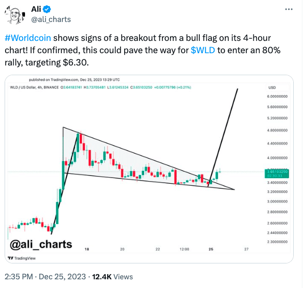 Worldcoin a attiré l'attention du monde entier à partir de novembre, atteignant son apogée le 18 décembre lorsqu'il a atteint 4,68 $ au cours d'une phase de reprise plus large du marché. Même s'il a connu une légère baisse depuis, il reste aux alentours de 3,81 dollars, alimentant des attentes optimistes.