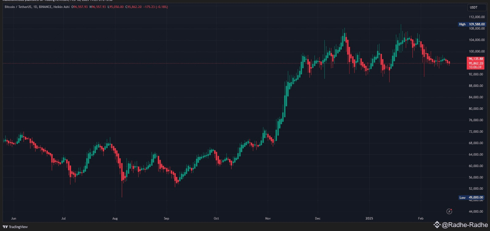 * Le prix actuel est d'environ 95 862 dollars, ce qui est plus proche de la plage inférieure de la consolidation récente.