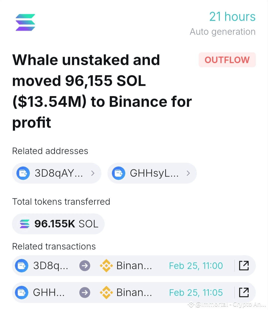 - *96,155 SOL dĂ©sengagĂ©s & dĂ©placĂ©s vers Binance* đđ :