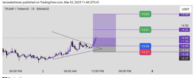 $TRUMP vient de montrer une sortie d'un modèle haussier de drapeau, qui est actuellement en forte hausse. Ce mouvement indique qu'un trend haussier commence sur le marché. Si vous le souhaitez, vous pouvez prendre une position longue sur ces actions maintenant, car il y a une possibilité de poursuite de la hausse du marché après la sortie. Cette stratégie peut être bénéfique pour un profit à court terme si l'analyse du marché et la tendance restent cohérentes.