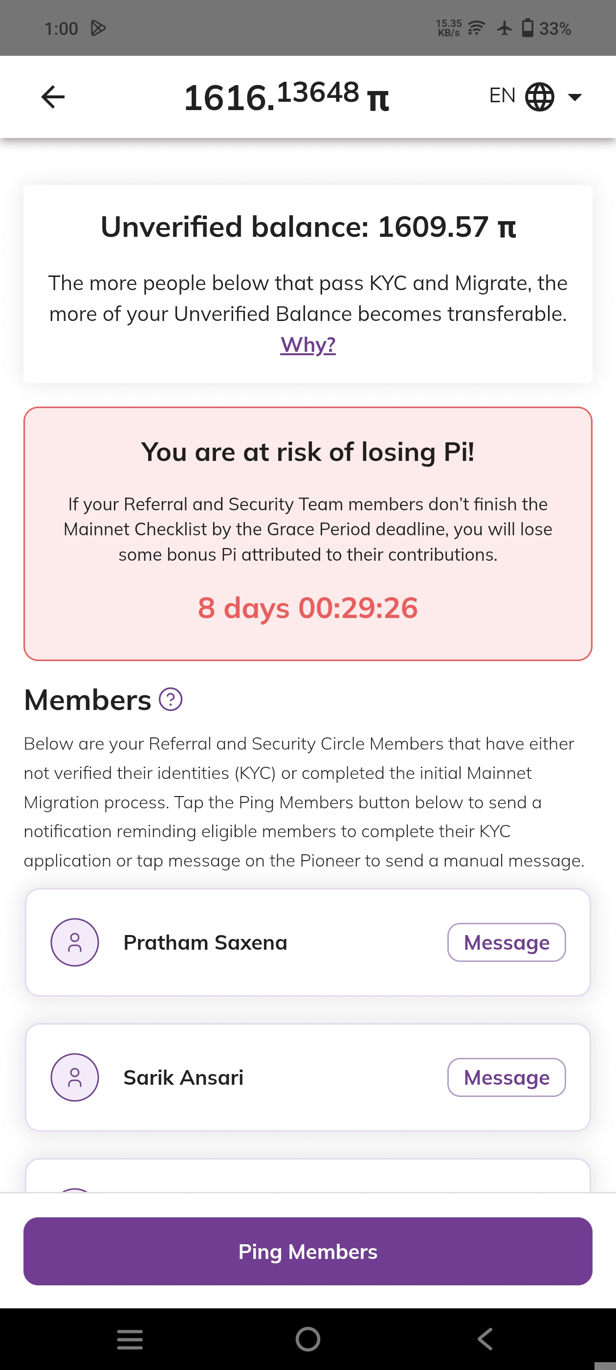 Puisque cette section consiste également en "Pi bonus" provenant des membres KYC dans votre cercle de sécurité/références, c'est la raison pour laquelle il y a des pionniers qui n'ont absolument aucun membre non-KYC dans leur cercle de sécurité/références, mais ils voient quand même un solde non vérifié (bien sûr, il y a aussi un bonus d'utilité et de nœud, mais une plus grande partie provient du cercle de sécurité et des références) sur leur tableau de bord.
