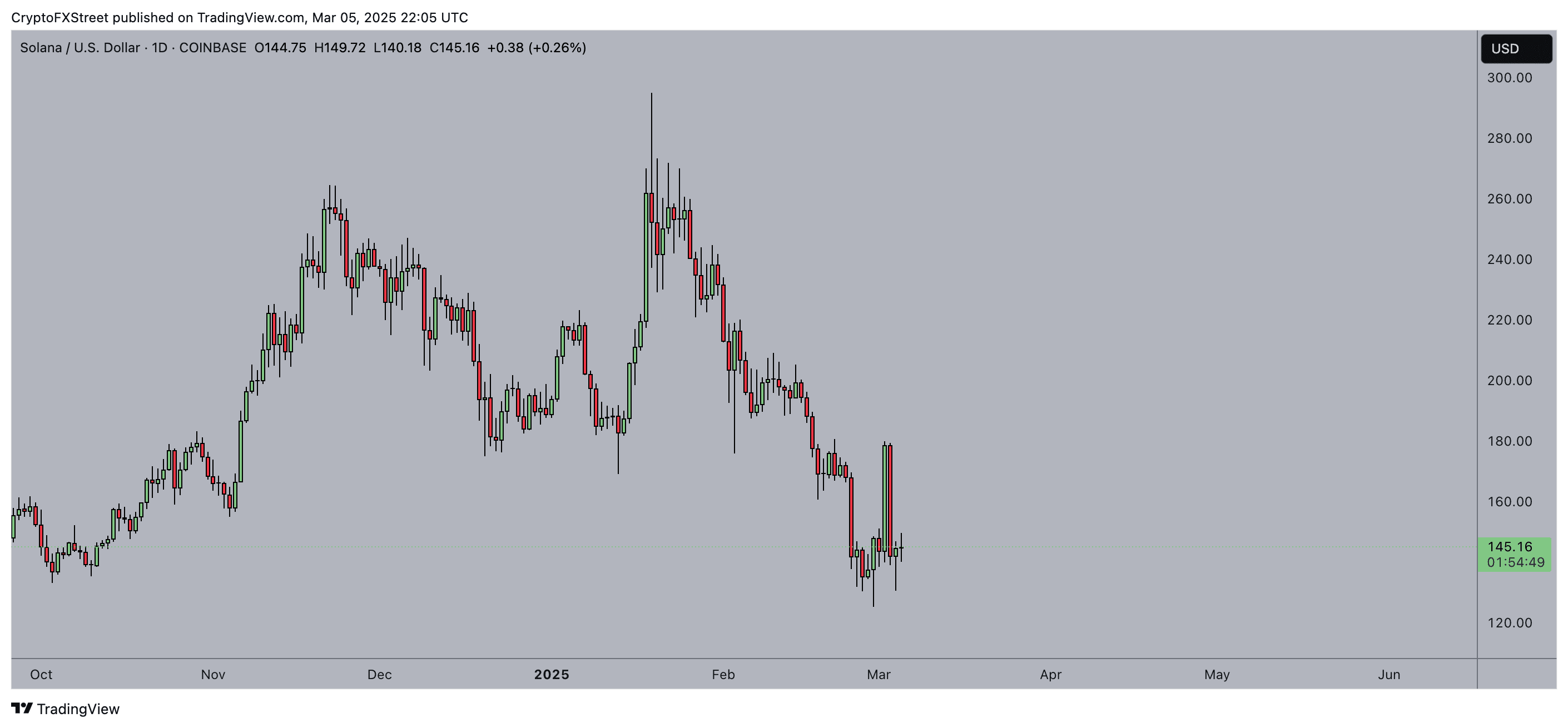 Le prix de Solana tourne autour de 145 $, tentant de se stabiliser après un récent rebond à partir des bas locaux.