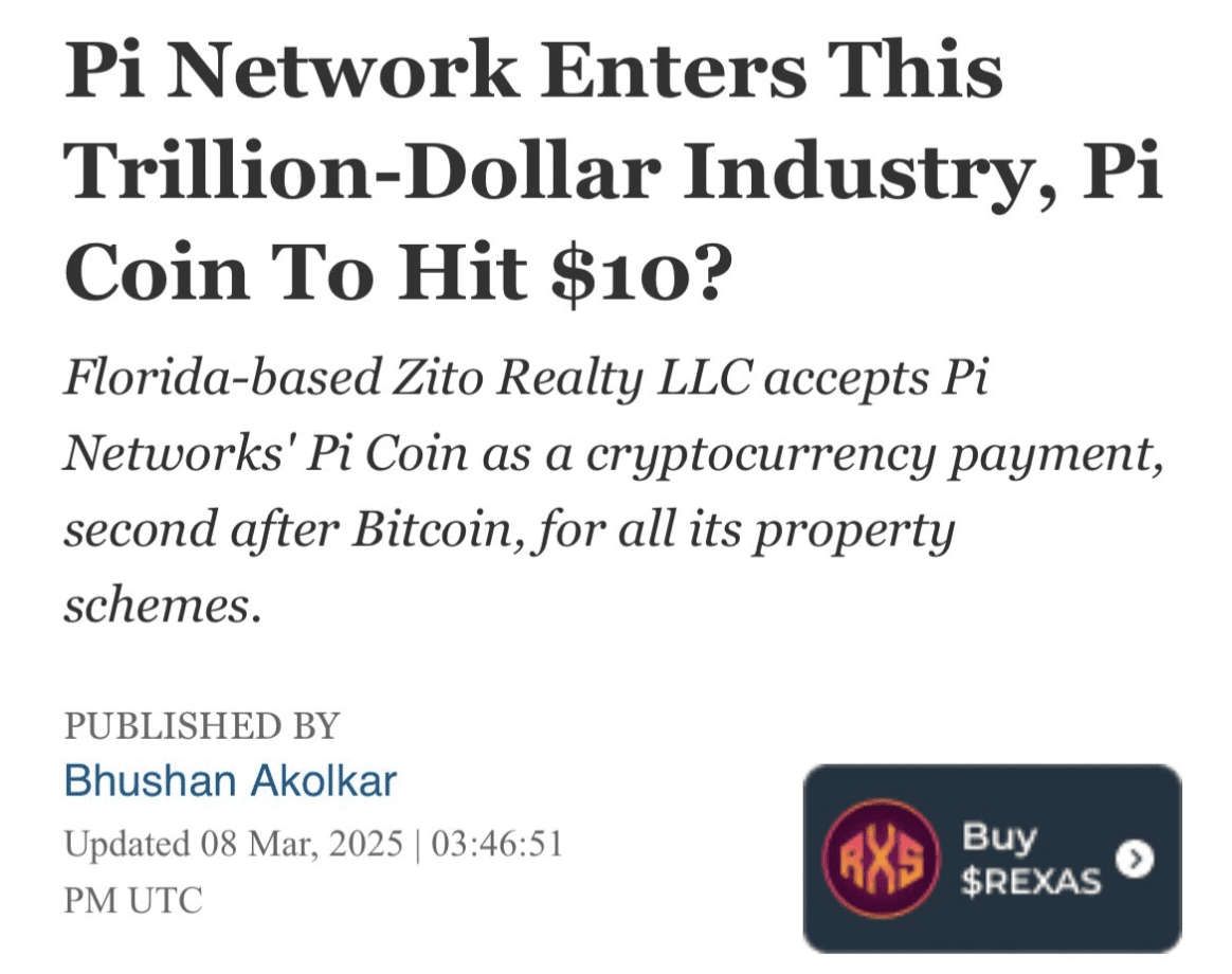 Cela montre que Pi Coin est prêt à entrer dans des industries traditionnelles comme l'immobilier. Avec Zito à la tête, il sera intéressant de voir si d'autres acteurs adoptent $Pi, alors que la popularité de cet actif numérique a considérablement augmenté. L'annonce sur le site officiel de Zito Realty note :