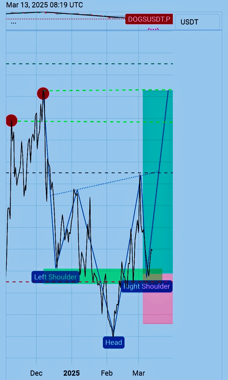 đPotentiel de Cassure : Si DOGE/USDT casse la ligne de cou, il pourrait monter. La zone verte marque la cible, avec une rĂ©sistance au-dessus.