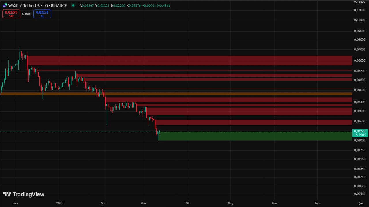 Le principal défi maintenant consiste à dépasser les barrières de résistance. Une confirmation valide de tendance haussière semble probable lorsque le prix de WAXP réussit à passer à travers les zones de résistance rouges pour entrer dans la zone orange. La confiance des participants du marché augmente grâce à ce changement de momentum tandis que la croissance soutenue des prix nécessite des conditions de marché stables et liquides pour persister.