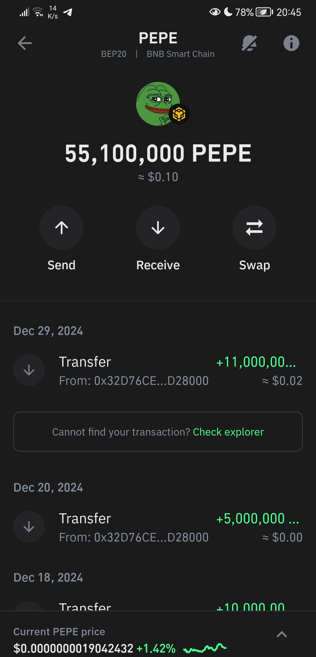 Je dĂ©tiens 55 millions de PEPE sur Trust Wallet, mais voici la partie Ă©trange : son prix est complĂštement diffĂ©rent de celui du marchĂ© principal ! đš
