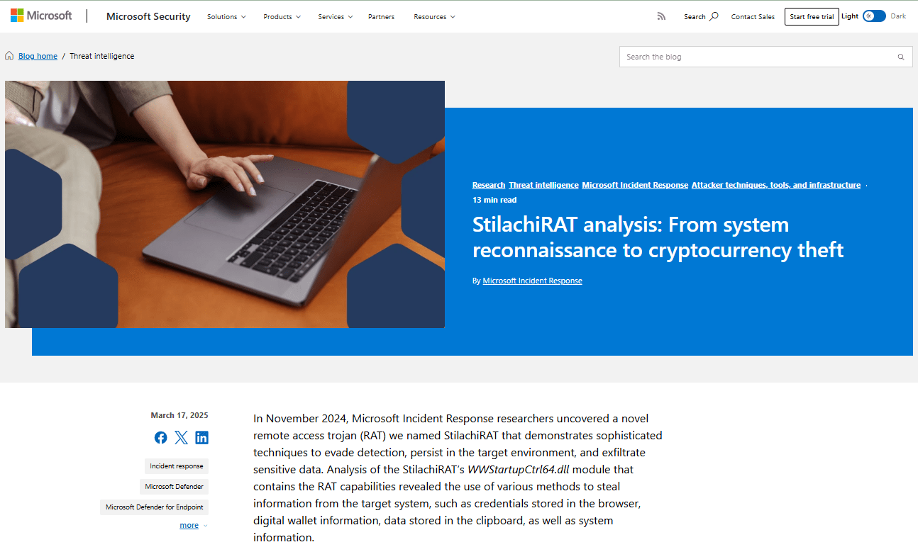 Microsoft a récemment révélé un nouveau cheval de Troie d'accès à distance (RAT) appelé StilachiRAT, ciblant spécifiquement les extensions de portefeuilles de cryptomonnaie du navigateur Chrome, pour voler les données des utilisateurs et dérober des actifs cryptographiques.