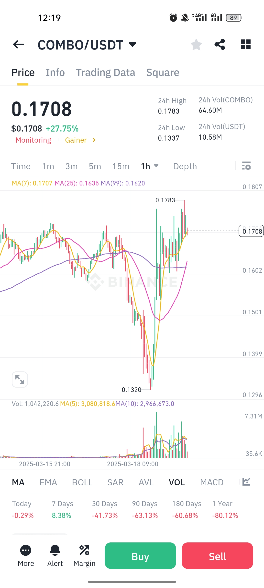 â Saut de Prix Massif : COMBO a grimpĂ© de 0,1337 $ Ă 0,1783 $, confirmant une forte pression d'achat.