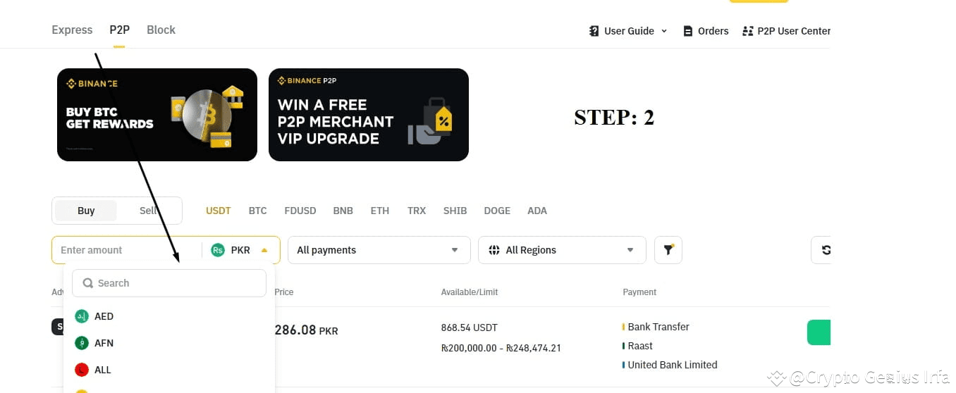Then select your currency that you want to buy with. It can be PKR , SAR or any of your native currency you can use the search option for the quick search.