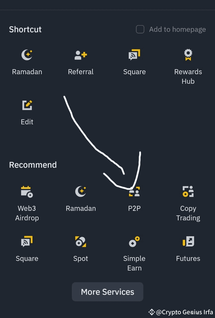 you can find a p2p option there " if your p2p option is not at the top you can click on " More services" to find it.