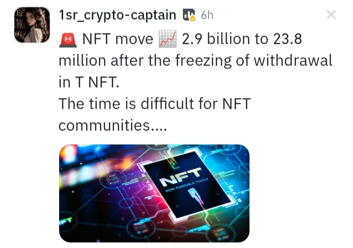 Un utilisateur a partagé ce post sur Binance Square NFT move 📈 2,9 milliards à 23,8 millions après le gel des retraits dans T NFT.