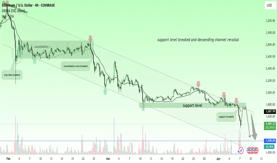 ETHUSD a officiellement confirmé sa structure baissiÚre sur le graphique 4H, et les prochaines bougies seront cruciales pour valider la continuation ou montrer des signes de retournement précoce.