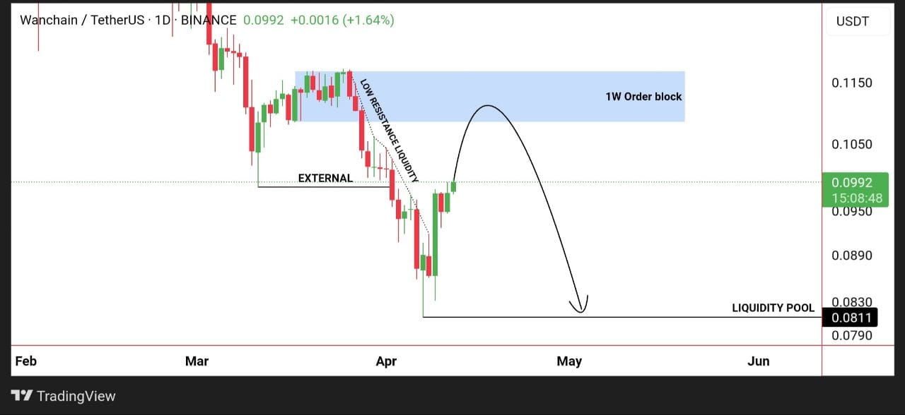 $WAN est actuellement dans une phase de retracement au sein d'une tendance baissière plus large. Le prix revient dans le bloc d'ordre hebdomadaire, qui s'aligne avec la liquidité interne de la plage. Cette zone agit comme une potentielle zone de déclenchement de vente.