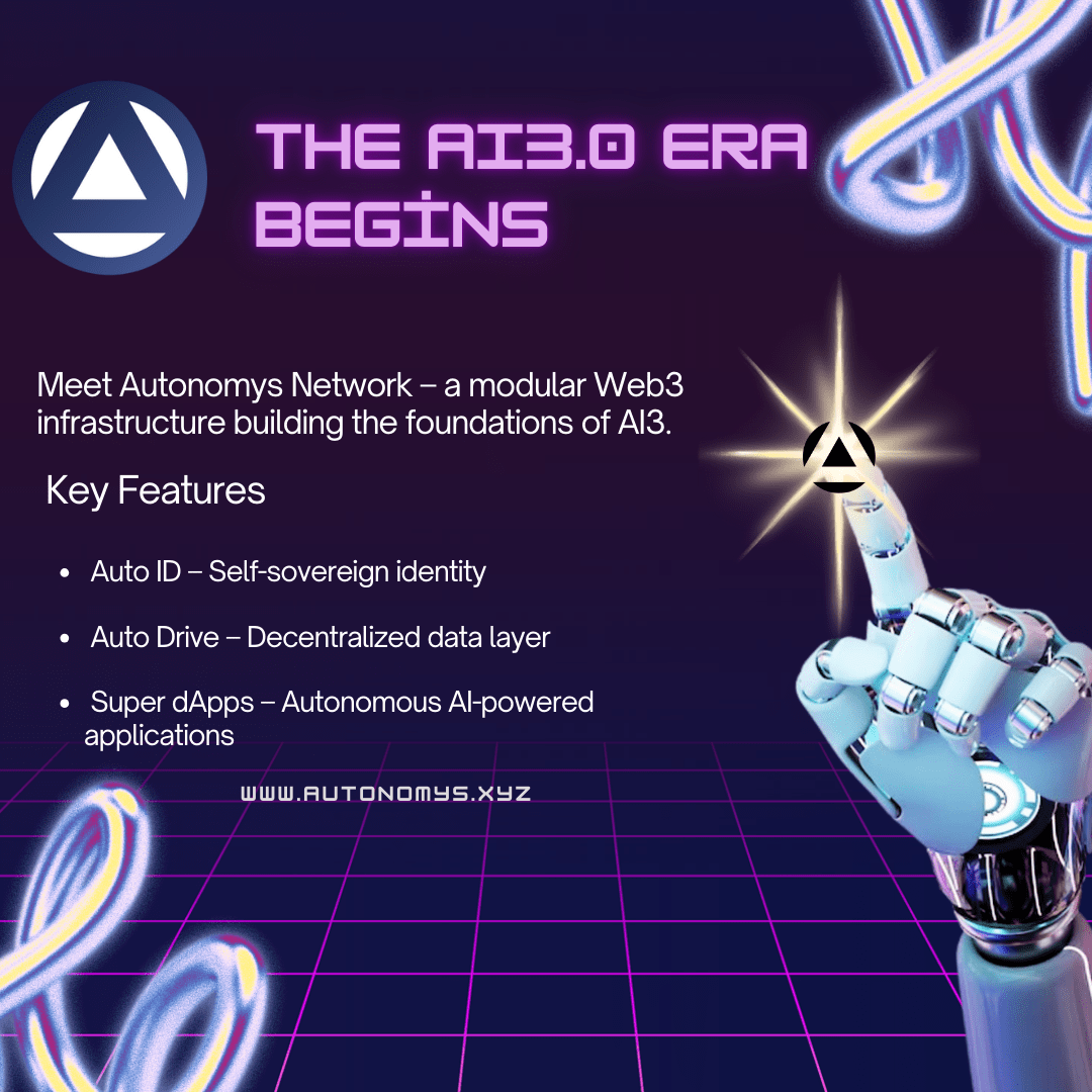 Le réseau Autonomys cherche à poser les bases d'une nouvelle génération d'IA, appelée #AI3 .0. Cette vision se concentre sur la construction d'une infrastructure IA transparente et sécurisée où les utilisateurs ont un contrôle total sur leurs propres données. En offrant un stockage distribué hautement efficace, une accessibilité aux données et des capacités de calcul modulaires, le réseau permet aux développeurs et aux utilisateurs de créer des applications décentralisées alimentées par l'IA.