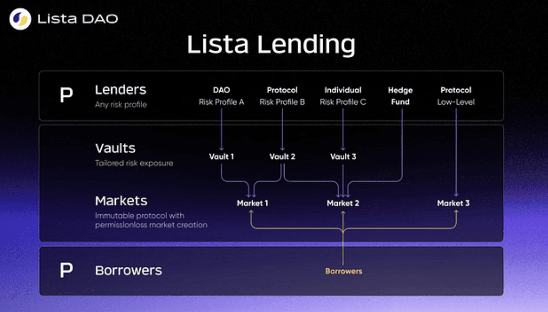 Lista Lending:打破传统束缚,赋能更广泛的用户群体。 作为Lista DAO生态中至关重要的一环,Lista Lending的推出标志着其在借贷领域迈出了关键一步。与传统依赖大型资金池的借贷协议不同,Lista Lending采用P2P模式,旨在提供更高效、安全、便捷的借贷体验,满足不同规模和需求用户的需求。