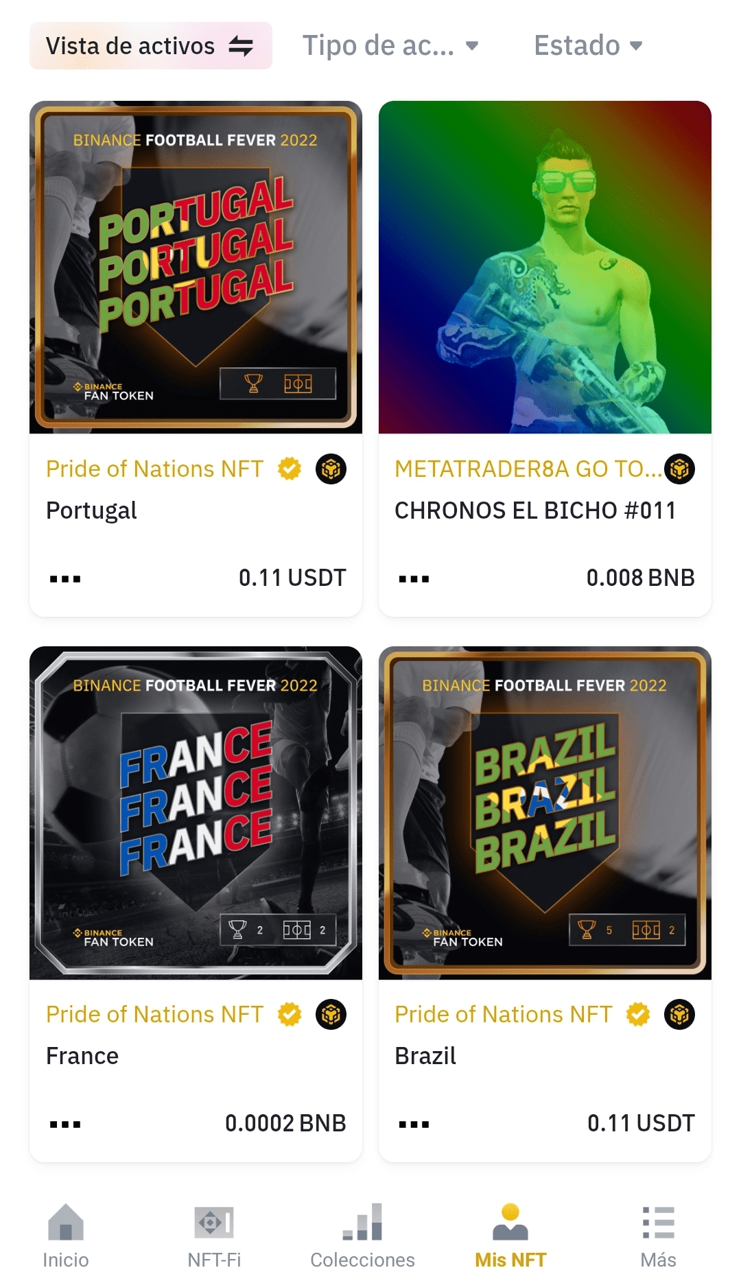 Bonjour, communauté de Binance ! Je suis un créateur passionné par le football et je suis ravi de présenter ma collection "Pride of Nations NFT" de la Binance Football Fever 2022. Représente ton équipe favorite avec ces NFTs épiques du Portugal, de la France, du Brésil et bien d'autres... chacun avec un design vibrant qui capture l'esprit du jeu.