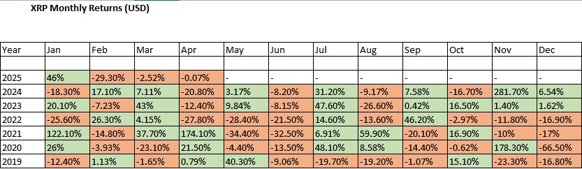 Graphique des rendements mensuels de XRP