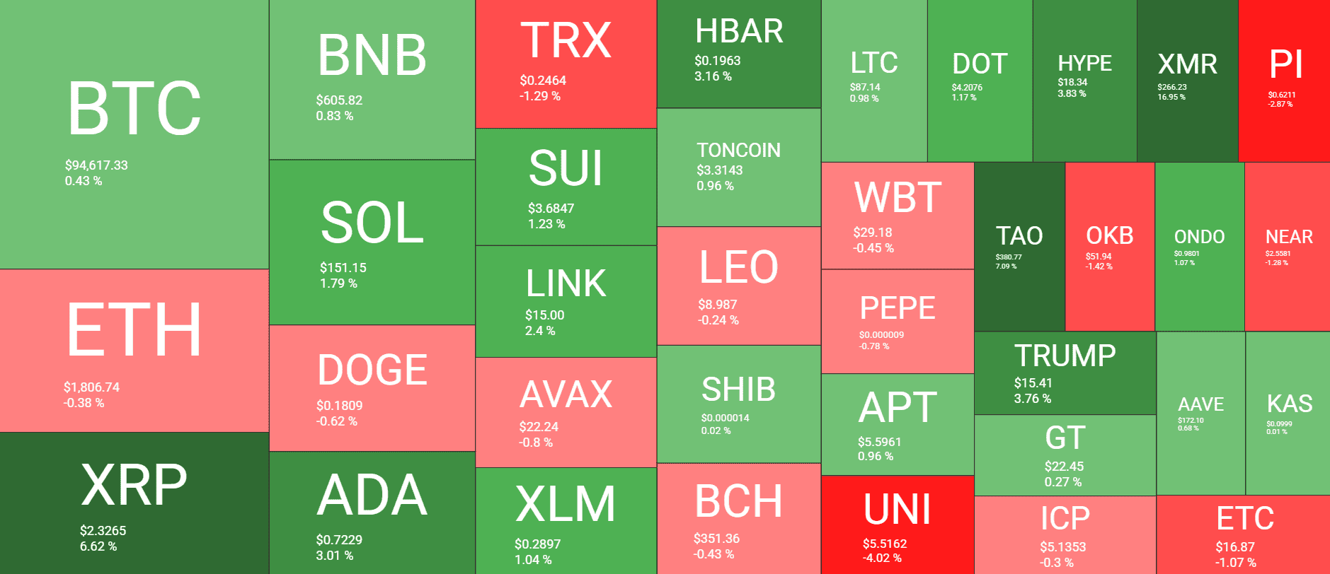 Les autres altcoins majeurs affichent des performances relativement stables. ADA, SOL, SUI, HBAR, LINK et XLM ont légèrement augmenté, tandis qu'ETH, DOGE, TRX et AVAX ont connu de légères baisses.