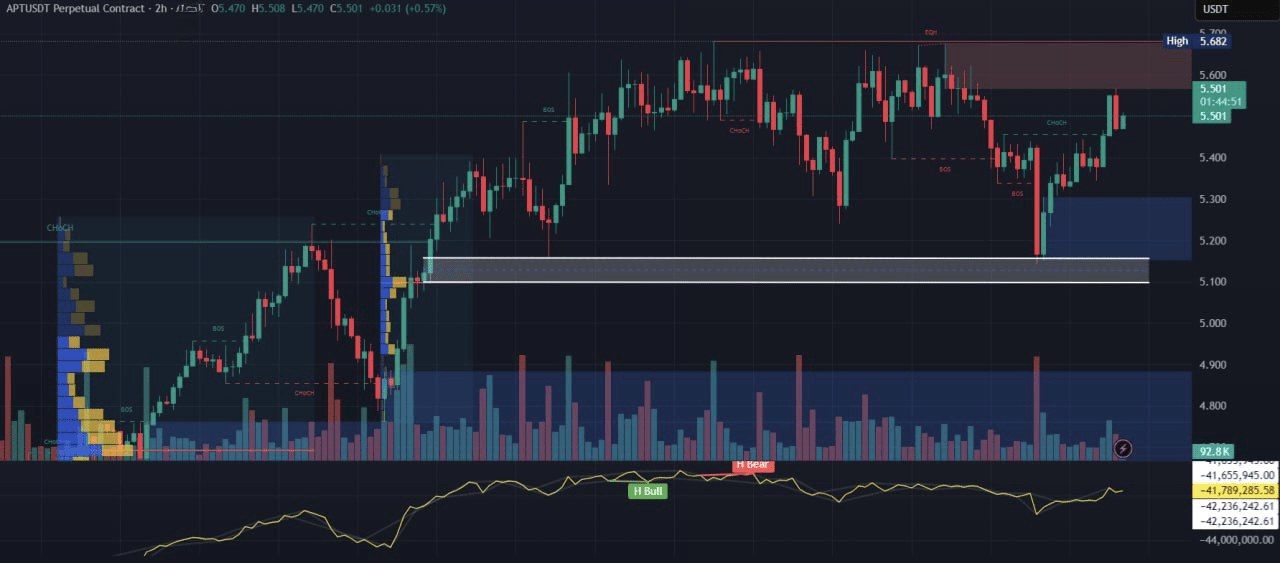 - CHoCH Baissier à 5,68 $ : A marqué le début du repli.