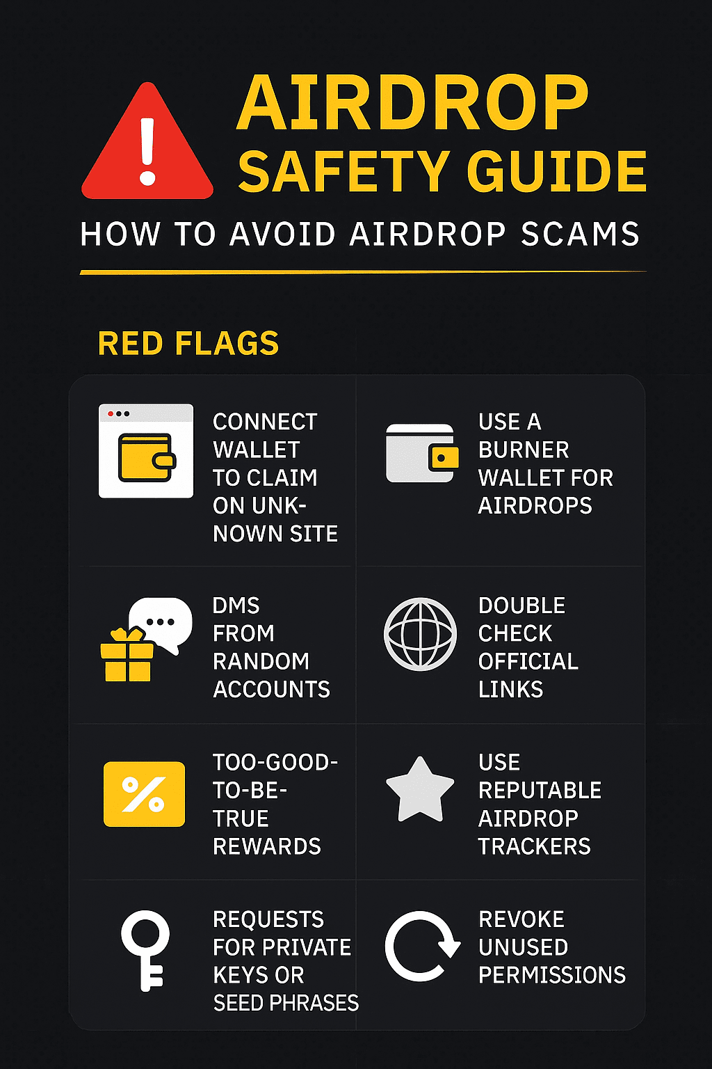Les airdrops sont un moyen populaire de gagner des tokens gratuits dans l'espace crypto, mais les escrocs ont utilisé cette tendance pour voler des fonds d'utilisateurs, des clés privées et des données. Si vous êtes nouveau dans la crypto — ou même un investisseur chevronné — ce guide vous aidera à reconnaître les signes d'alerte et à rester en sécurité.