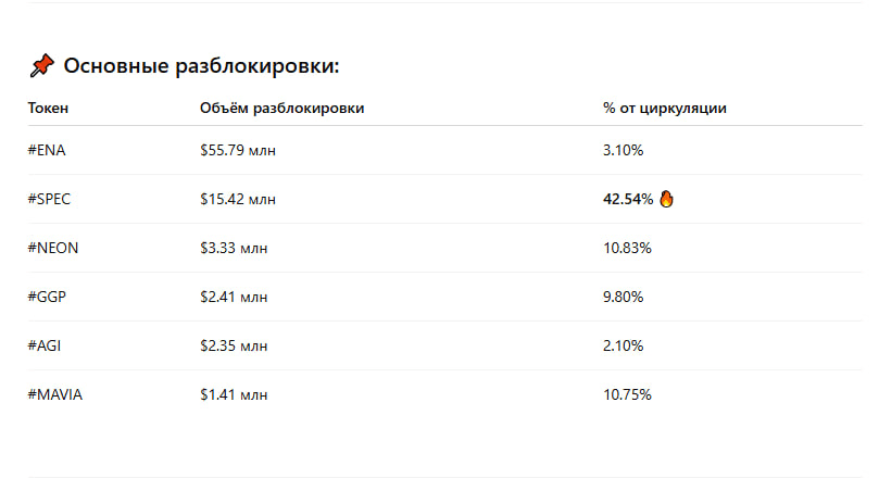 ❌ Évitez les longs sur #SPEC et #ENA près de la date de déblocage.