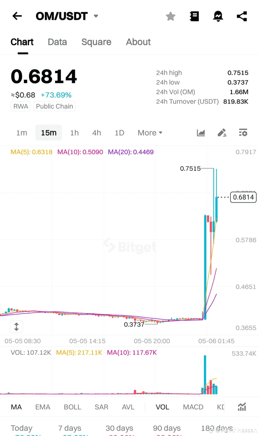 Récemment, le $OM token a connu une augmentation soudaine de plus de 70 % sur #Bitget , tandis que son prix est resté stable ou même a diminué sur d'autres grands échanges comme Binance et Bybit.