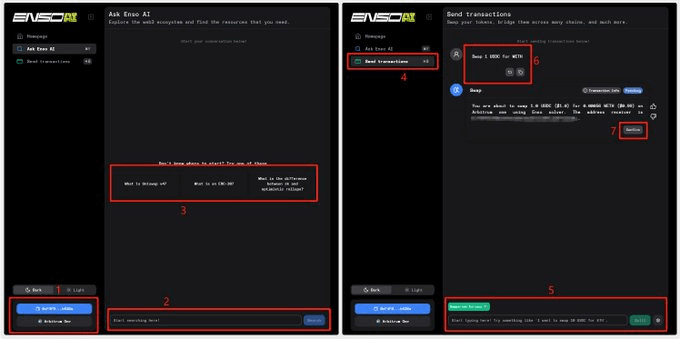 Par exemple, j'envoie : échanger un USDC contre WETH