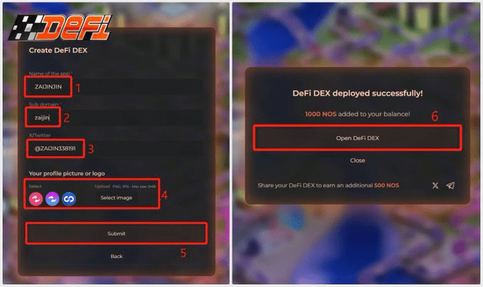 Cliquez sur DeFi DEX pour interagir