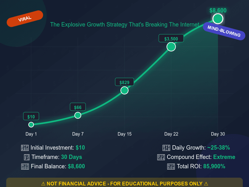 Je viens de dĂ©couvrir quelque chose d'INSANE ! đ€Ż Ce graphique de croissance d'investissement montre comment transformer potentiellement juste 10 $ en 8 600 $ en seulement 30 jours en utilisant des stratĂ©gies de croissance composĂ©e.