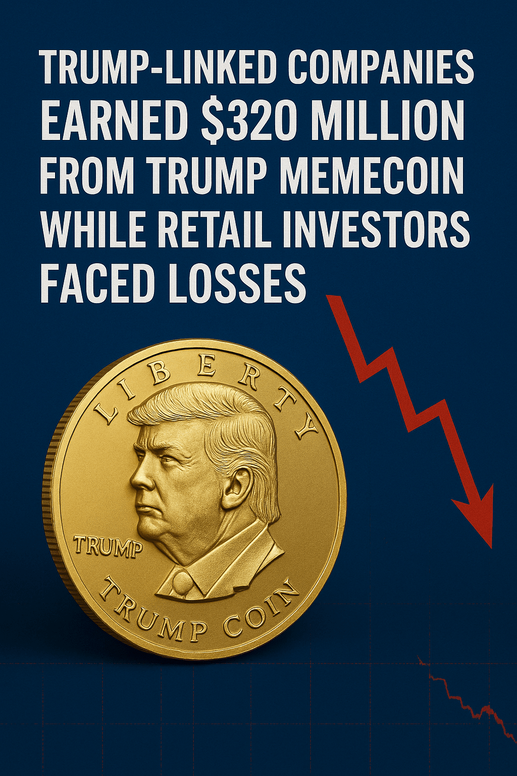 Selon les données de la société d'analyse blockchain Chainalysis, les créateurs du jeton #TR TRUMP—lié à des entreprises associées à la #TR famille Trump—ont réalisé plus de 320 millions de dollars de revenus grâce aux frais de transaction et aux ventes anticipées de jetons. Pendant ce temps, le jeton a chuté de près de 87 % de sa valeur depuis son lancement, laissant la plupart des investisseurs de détail #investor dans le rouge.