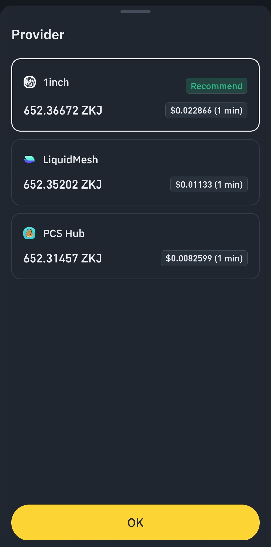 4️⃣ Choisissez le bon fournisseur (PancakeSwap ou 1INCH). PancakeSwap peut être moins favorable, alors vérifiez toujours lequel vous offre le meilleur retour de token.