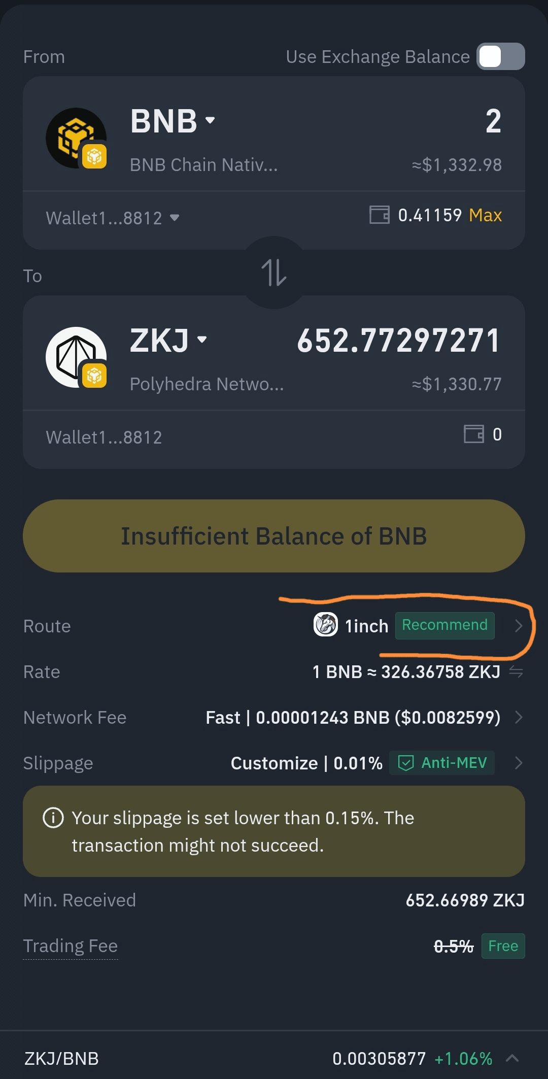 2️⃣ Échangez avec 2 ou 3 BNB à chaque fois ( ou autant que vous pouvez)
