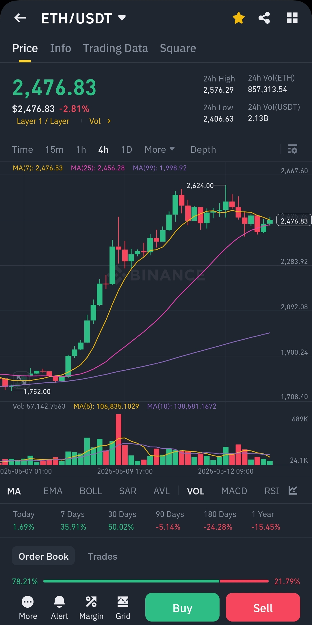 MA(7) : 2 476,53 $ (tendance à court terme)