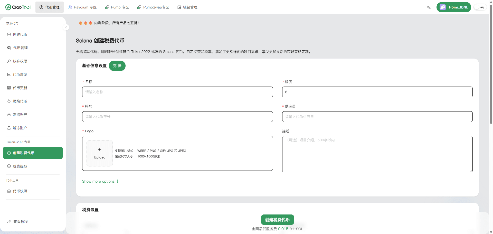 L'outil de plateforme prend en charge les outils sans code pour Token-2022, permettant de créer rapidement des tokens Solana avec un modèle économique complet.