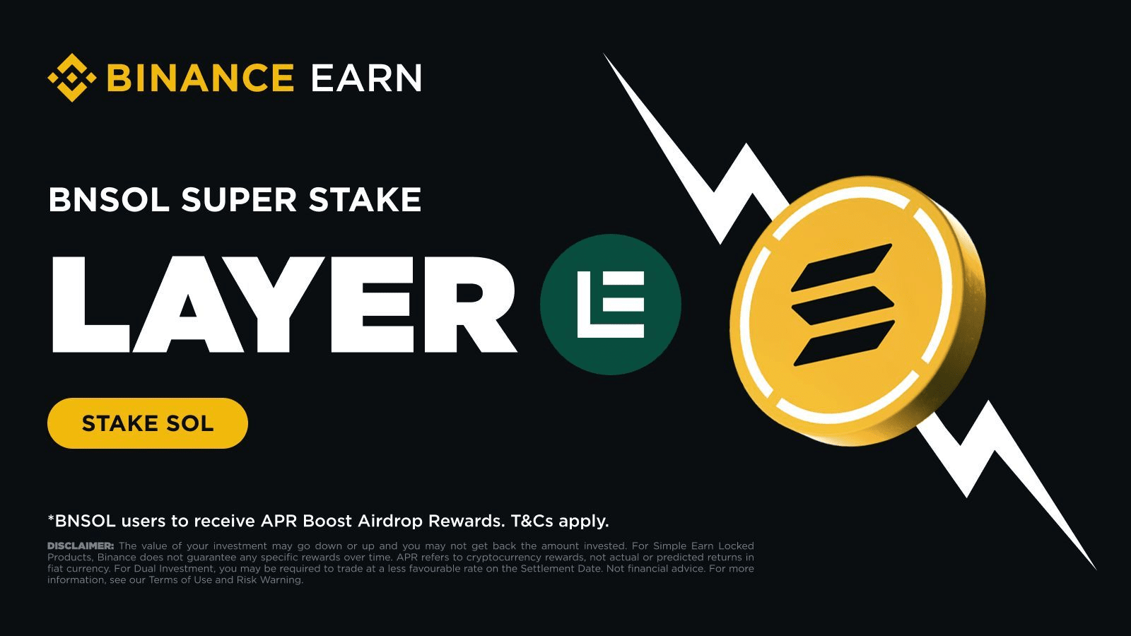 Cela s'appelle BNSOL Super Stake, et c'est en direct sur Binance jusqu'au 16 juillet. Tout ce que vous avez à faire est de staker ou de conserver BNSOL/sBNSOL - et vous commencerez automatiquement à gagner des récompenses APR boostées de Solayer.