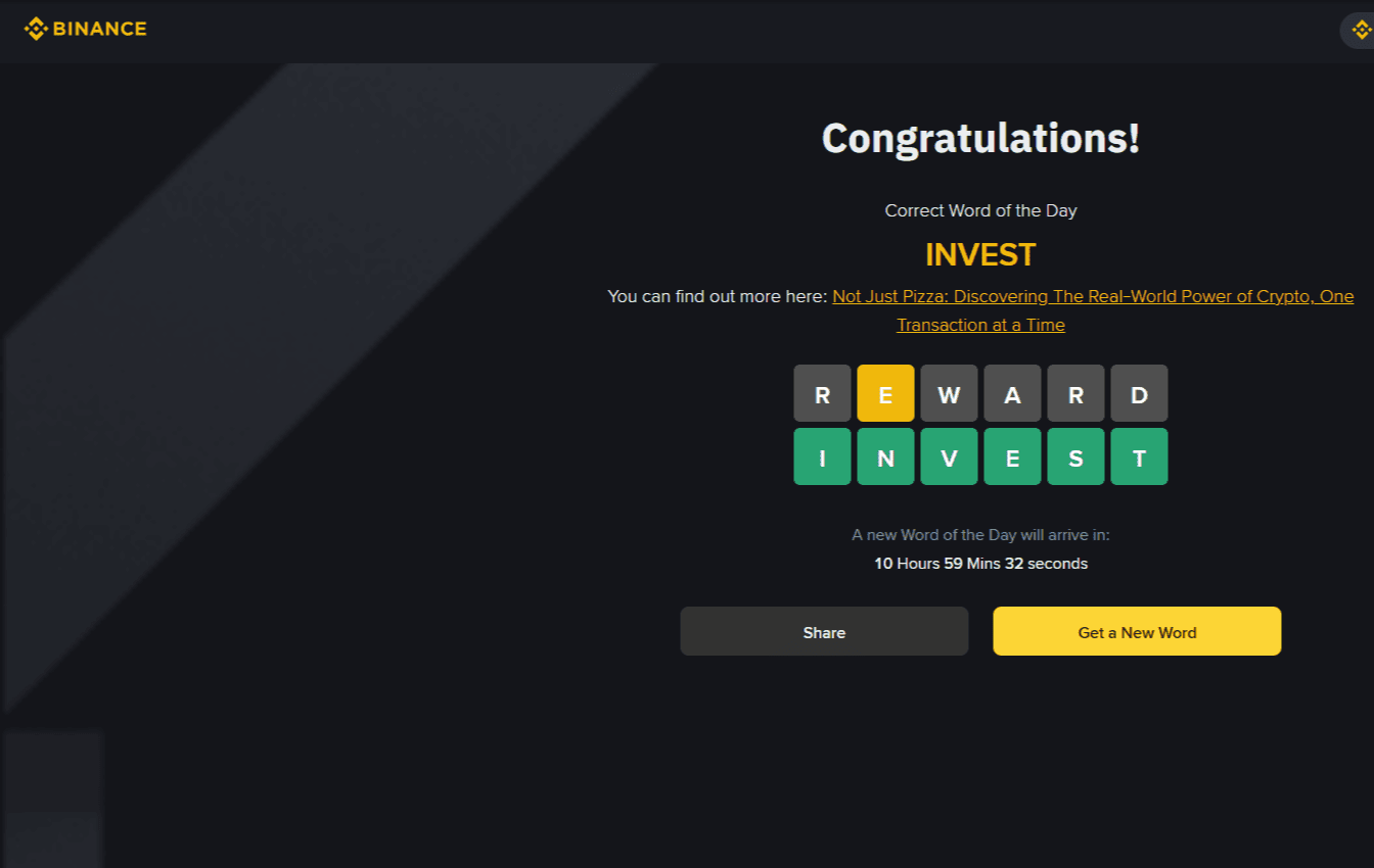 Si vous êtes sur Binance et que vous n'avez pas encore essayé le Mot du Jour, lancez-vous. Vous pourriez vous surprendre - et peut-être repartir avec des récompenses supplémentaires aussi.