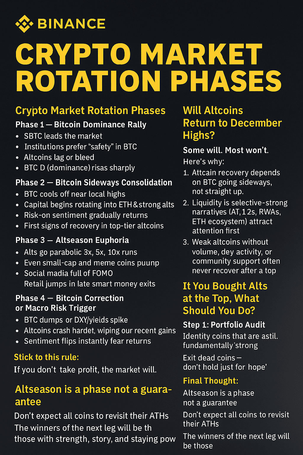 L'altseason est une phase, pas une promesse. Tous les altcoins ne retrouveront pas leur sommet historique. Les gagnants de la prochaine phase du marché seront ceux avec une vraie force, une histoire convaincante et une solidité à long terme.
