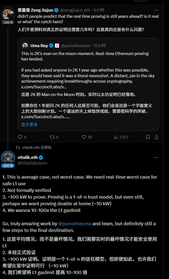 V神@VitalikButerin a retweeté le tweet officiel de @SuccinctLabs, et juste après, il a écrit un commentaire de plusieurs centaines de mots en citant le tweet du fondateur de Succinct, @pumatheuma.