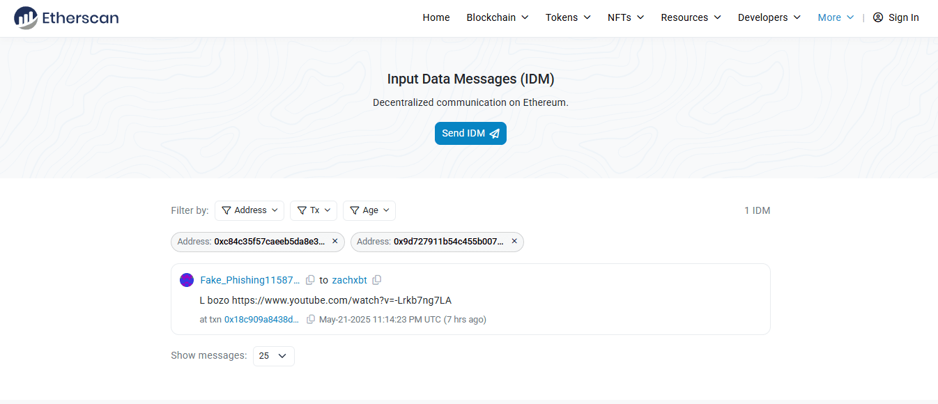 Mercredi soir, un message mystérieux est apparu sur la blockchain Ethereum — une moquerie directe visant l'un des enquêteurs crypto les plus en vue. L'expéditeur ? Un hacker lié à la récente violation massive de données chez Coinbase, qui a compromis les comptes de plus de 69 000 utilisateurs et pourrait coûter des centaines de millions de dollars à l'échange.