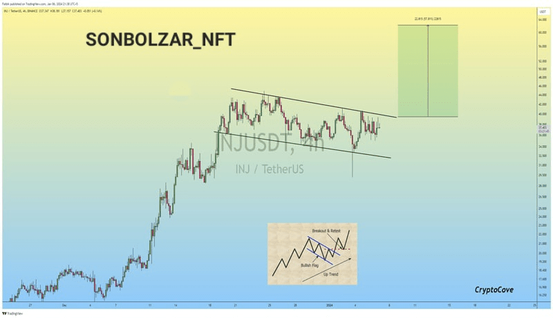 Au moment de la publication de cette nouvelle, le jeton injectif est évalué à 37,70 $. Le plafond de prix de cette monnaie numérique a été enregistré le 26 décembre 2023, atteignant le niveau de 44,61 $.