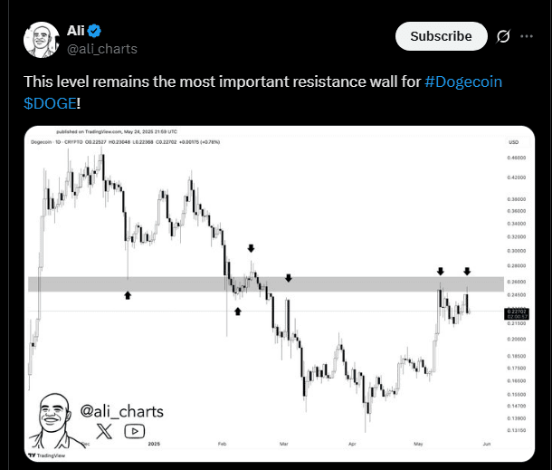 La résistance à 0,25 $ est une barrière critique pour une tendance haussière.