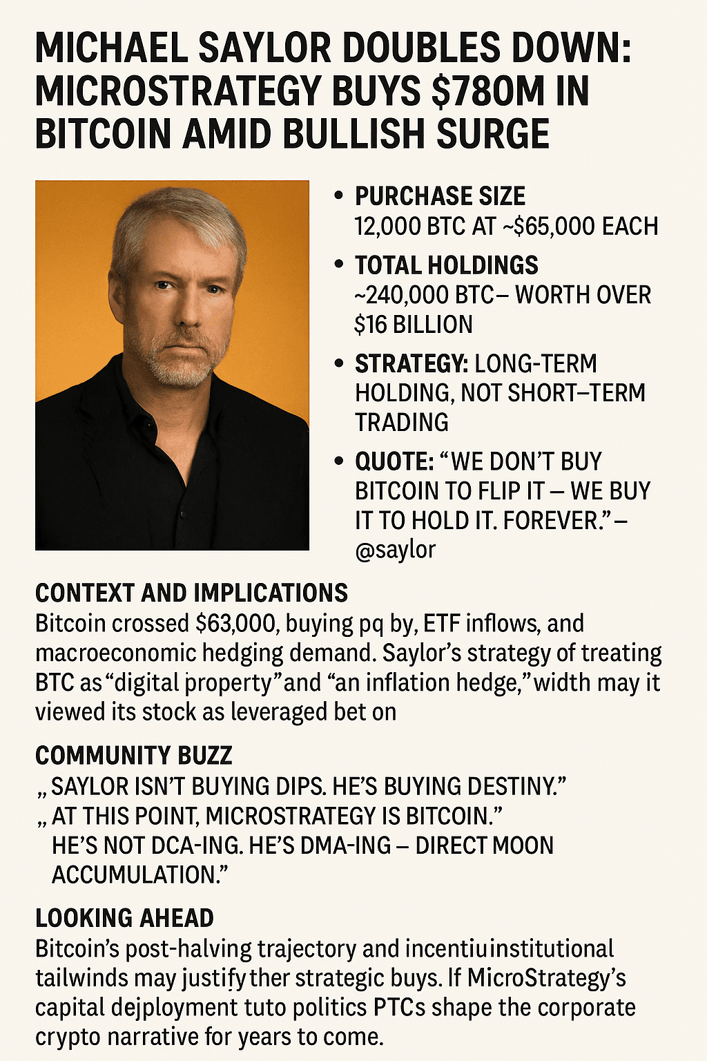 #SaylorBTCPurchase Michael Saylor, le président exécutif de MicroStrategy, a une fois de plus fait la une des journaux dans le monde de la crypto. L'entreprise a annoncé un autre achat majeur de Bitcoin $BTC , déclenchant le hashtag tendance #SaylorBTCPurchase sur les réseaux sociaux et suscitant l'excitation parmi les partisans du Bitcoin.