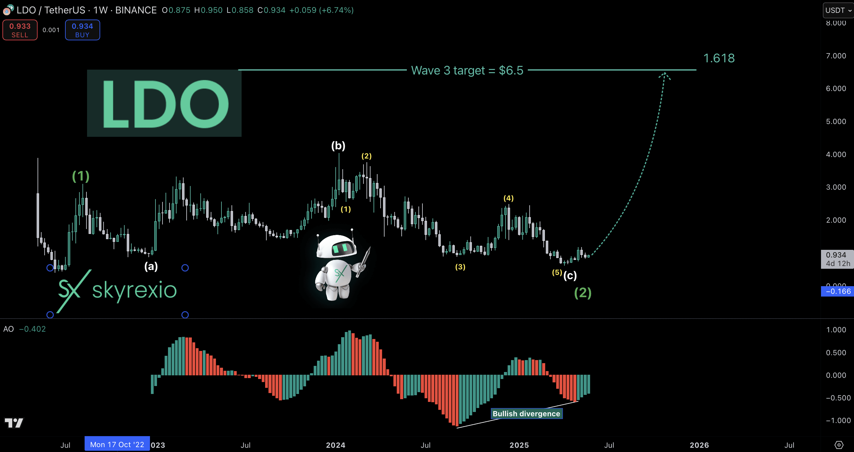 Aujourd'hui, je fais une mise à jour sur $LDO laquelle je maintiens sur place avec un prix moyen de 0,8 $. Tout d'abord, je vais clarifier comment cette prévision haussière peut correspondre à mon analyse d'hier sur la chute des altcoins. Facilement ! Il y avait le cadre temporel de 2 jours - analyse à moyen terme. C'est un graphique hebdomadaire. Je peux admettre qu'une certaine chute est possible pour Lido Dao ou d'autres altcoins, mais l'image globale restera la même.